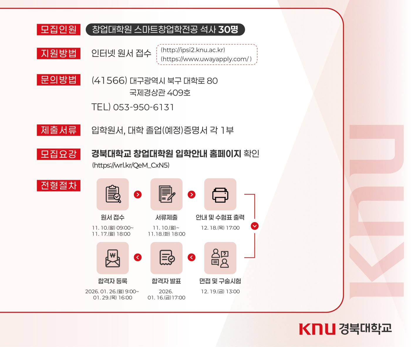 2026년도 경북대학교 창업대학원 신입생 모집 안내